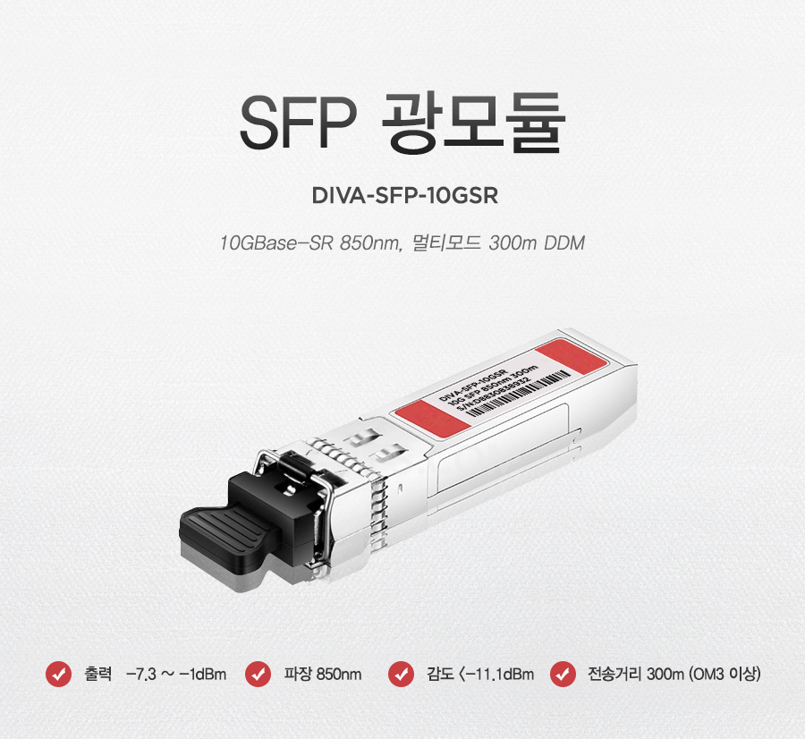 DIVA SFP(Small Form Pactor)´Â 100G/40G/25G/10G/2.5G/1G Åë½Å ¼Óµµº°, ¸ÖƼÄÚµå/½Ì±Û¸ðµå 300m ~ 120km Àü¼Û°Å¸®º° ´Ù¾çÇÏ°í ¾ÈÁ¤µÈ ±¤¸ðµâ·¯¸¦ Á¦°øÇϰí ÀÖ½À´Ï´Ù.