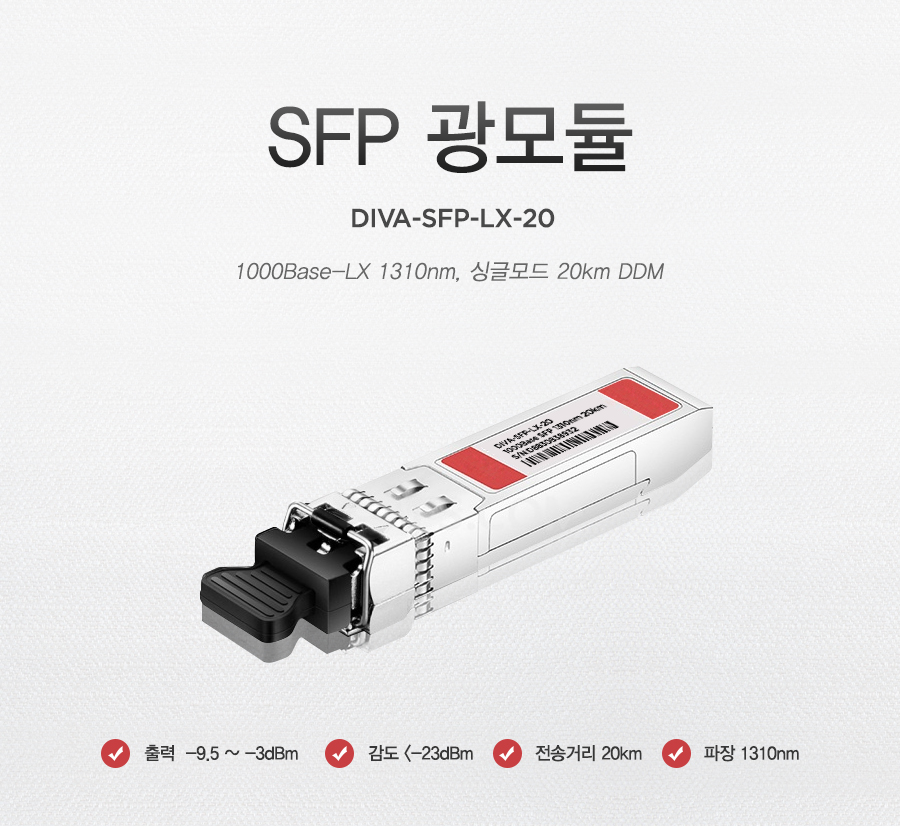 DIVA SFP(Small Form Pactor)´Â 100G/40G/25G/10G/2.5G/1G Åë½Å ¼Óµµº°, ¸ÖƼÄÚµå/½Ì±Û¸ðµå 300m ~ 120km Àü¼Û°Å¸®º° ´Ù¾çÇÏ°í ¾ÈÁ¤µÈ ±¤¸ðµâ·¯¸¦ Á¦°øÇϰí ÀÖ½À´Ï´Ù.