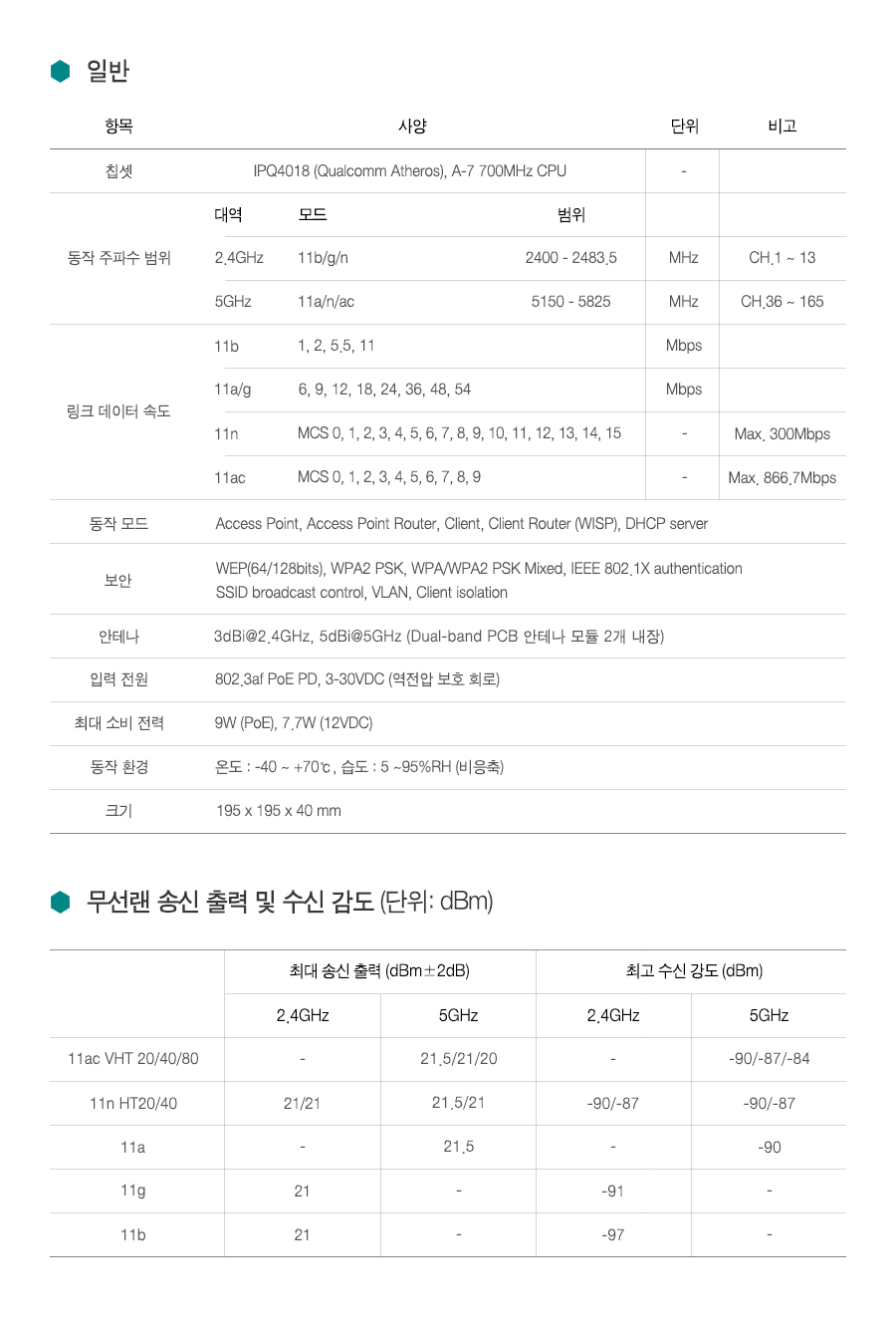 3dBi@2.4GHz, 5dBi@5GHz (Dual-band PCB ¾ÈÅ׳ª ¸ðµâ 2°³ ³»Àå) |