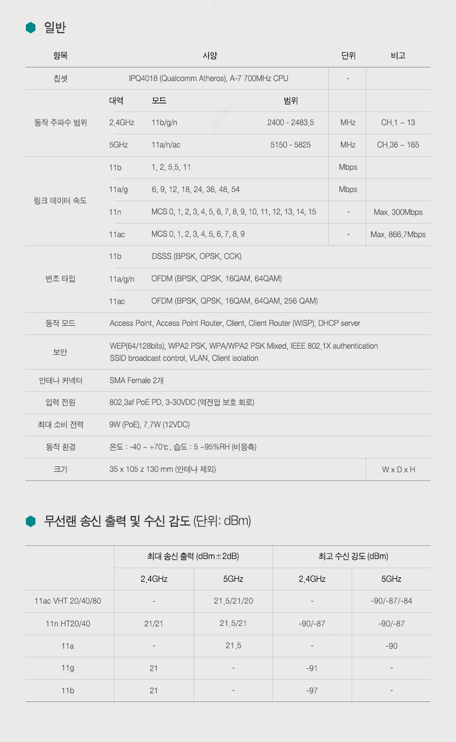 ÃÖ°í ¼ö½Å °¨µµ (dBm) |