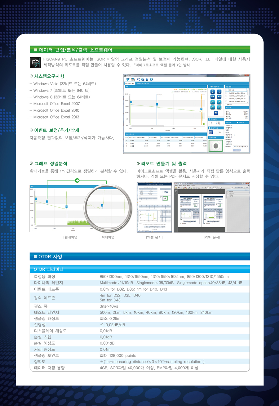![]() Introduction¡Ü FISCAN9 OTDRÀº 1.5kgÀ¸·Î °¡º±°í ÄÄÆÑÆ®ÇÑ »çÀÌÁ °®Ãß¾î, ±¤ÄÉÀÌºí ½Å±ÔÆ÷¼³°ú À¯Áöº¸¼ö¿¡ ÃÖÀûÈµÈ ÇʵåÇü ¼±·Î Å×½ºÅÍ ºÐ¼®±â ÀÔ´Ï´Ù. FISCAN9Àº »ç¿ëÆÄÀå¿¡ µû¶ó 4°¡Áö ¸ðµ¨À» Á¦°øÇϸç, º¸´Ù È¿À²ÀûÀ̰í Á¤È®ÇÑ ÃøÁ¤Ç°ÁúÀ» À§ÇØ 4°¡ÁöÀÇ Ãß°¡ ¾×¼¼¼¸®¸¦ Á¦°øÇÕ´Ï´Ù.ÁÖ¿äÆ¯Â¡¡Ü ÀÎÁõ°Ë»ç¡Ü ¼±·ÎǰÁú ÃøÁ¤ ¡Ü ¼±·Î°¨½Ã OTDR ÆÄ¶ó¹ÌÅÍ